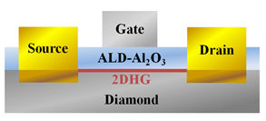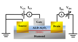 パワーデバイスは自動車、鉄道、家電、コンピュータ等様々な機器に用いられており、今後もさらなる需要の拡大が予想されています。大電流・大電圧を扱うパワーデバイスにおいて高耐圧化は重要な課題のひとつであり、現在、Siに代わる新たなパワーデバイスの材料として主にSiCやGaNが注目されていますが、ダイヤモンドの絶縁破壊電界はそれらの約3倍(Siの約33倍)であるため、さらなる高耐圧デバイスが期待できます。 そこで我々はダイヤモンドを用いたMOSFETにおいて高耐圧化を目指しており、ダイヤモンド表面を水素終端した際に誘起されるホール蓄積層をチャネルとし、絶縁膜としてALD法(原子層堆積法)による酸化アルミニウムを用いた水素終端ダイヤモンドMOSFETを作製しています。